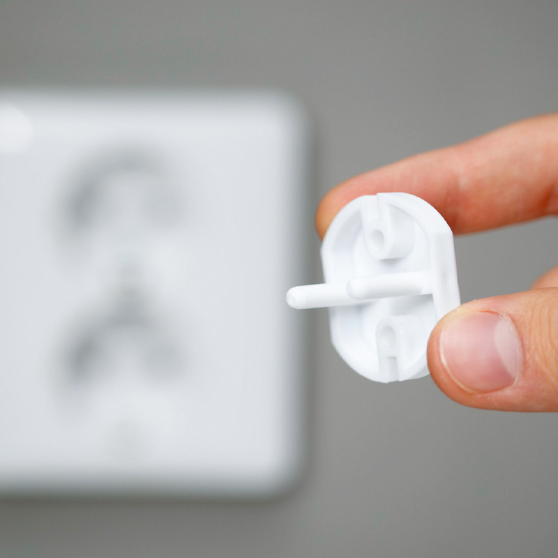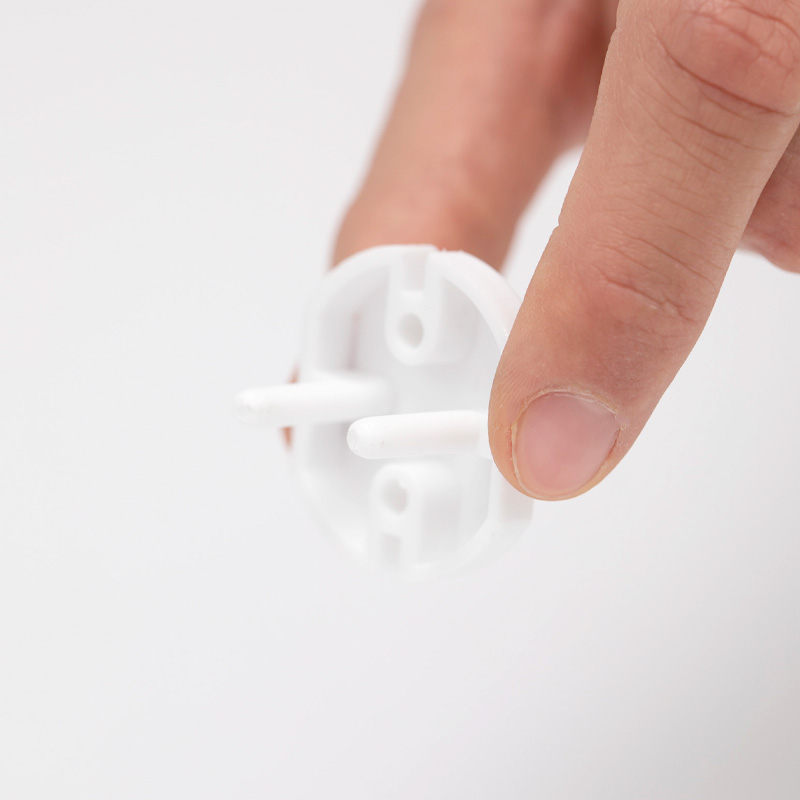 Sikringen passer vanlige stikkontakter i EU-standard og er en diskret og pålitelig løsning for barnesikring i hjemmet.