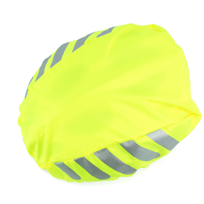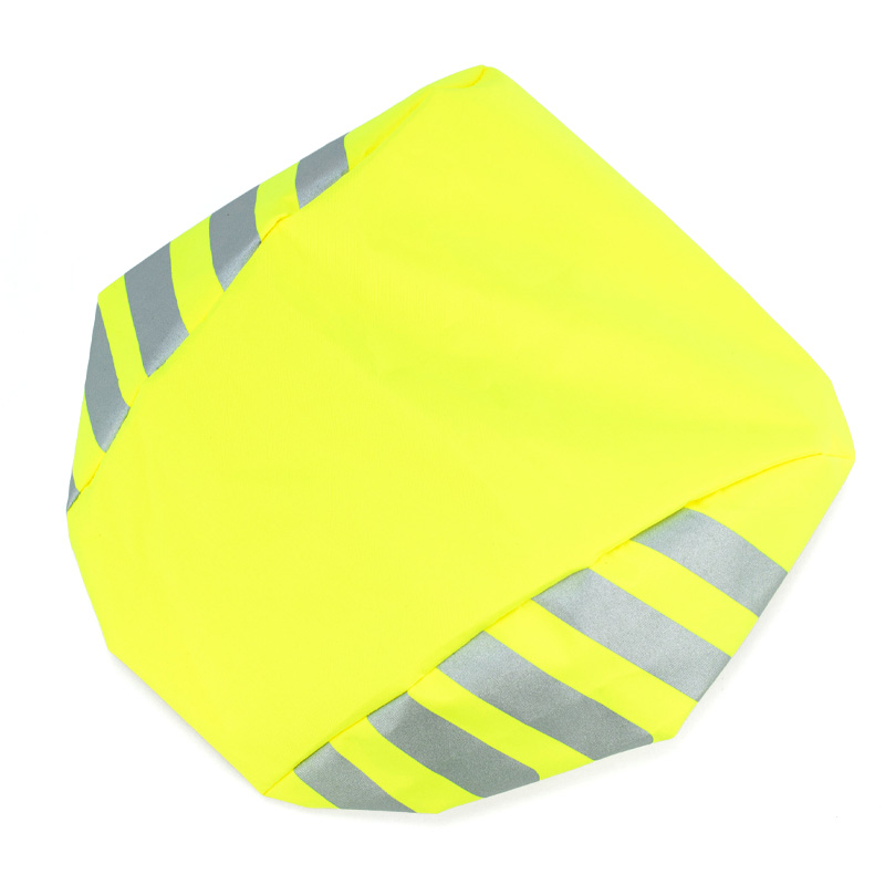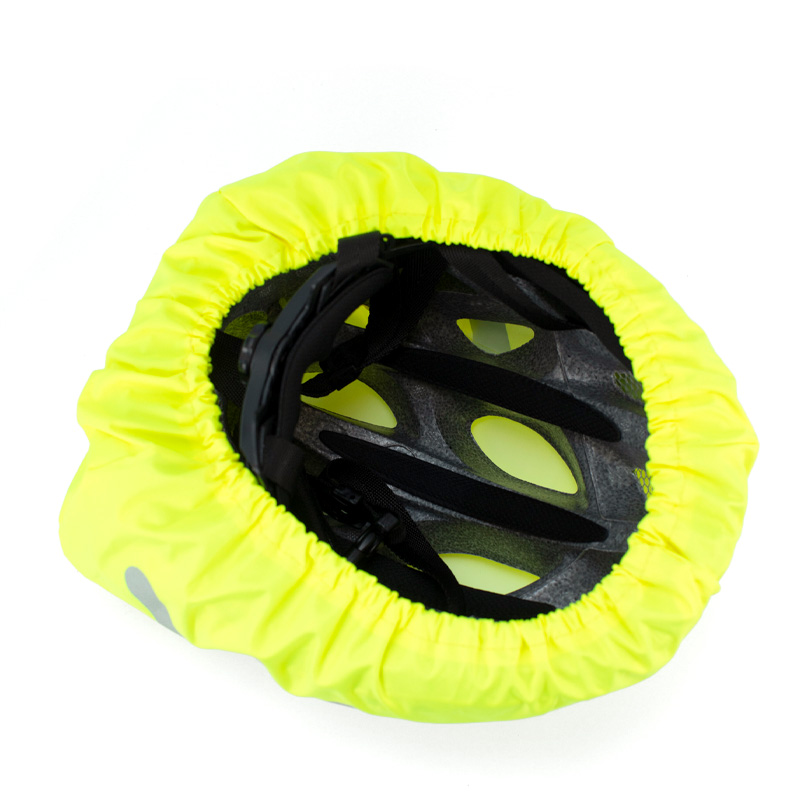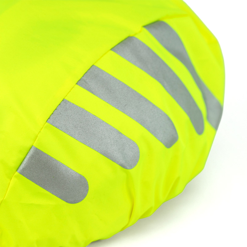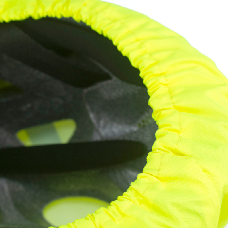 Dette neongule trekket med refleksdetaljer gjør at du synes godt i mørket og holder hjelmen tørr når det regner.