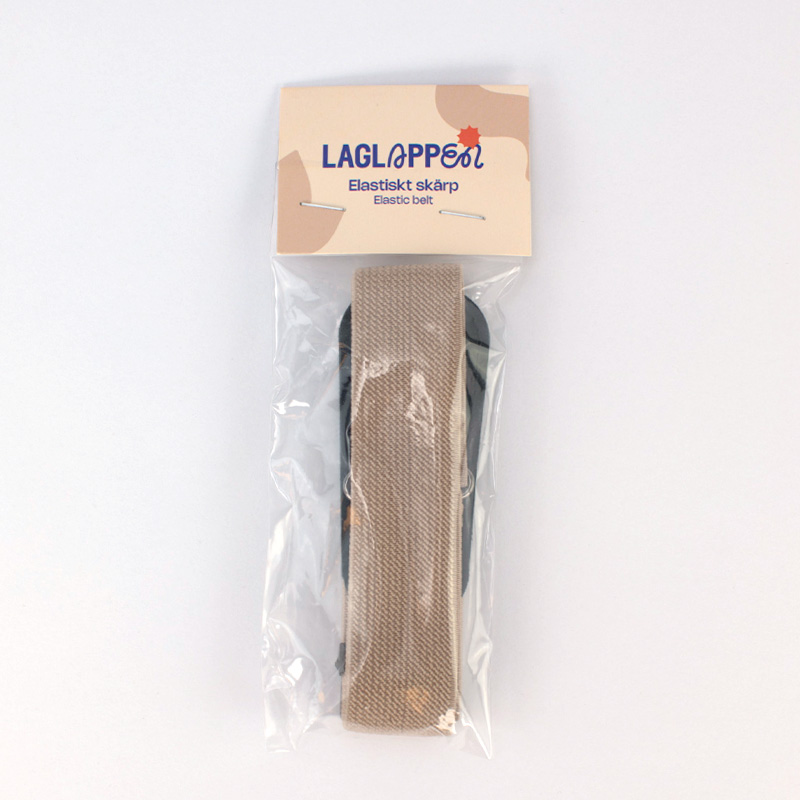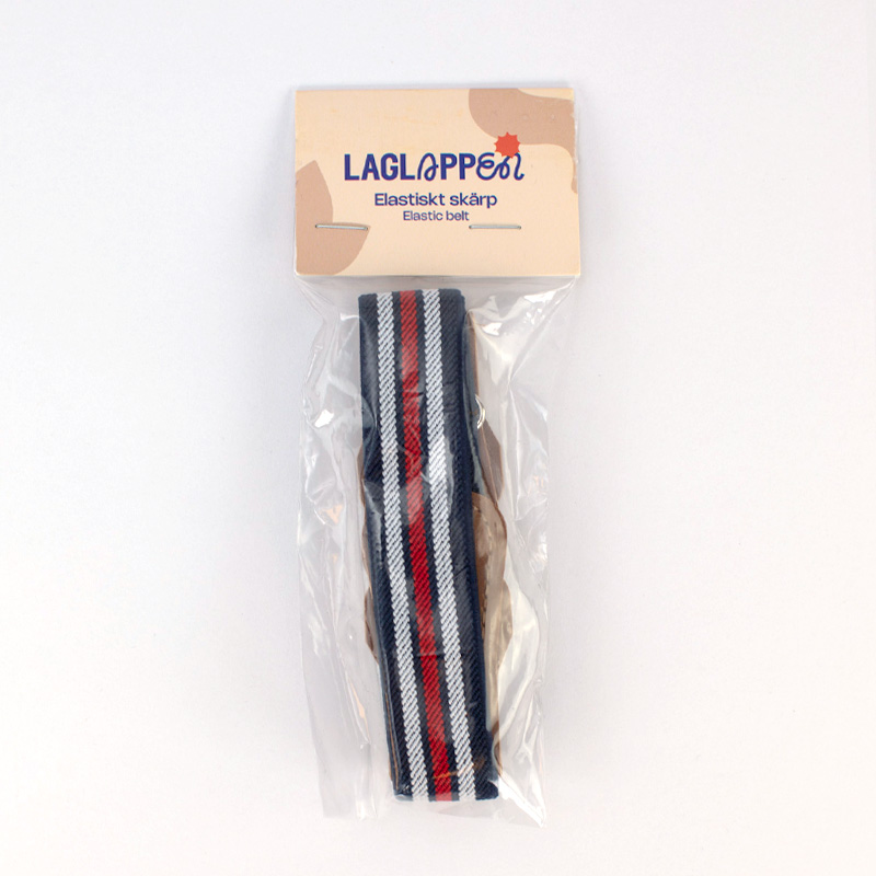 Materialet på beltet er laget av elastisk canvasbånd og fleksibelt PU-skinn. Bredden på beltet er ca 32 mm. Barnemodellen har en bredde på 25 mm.
