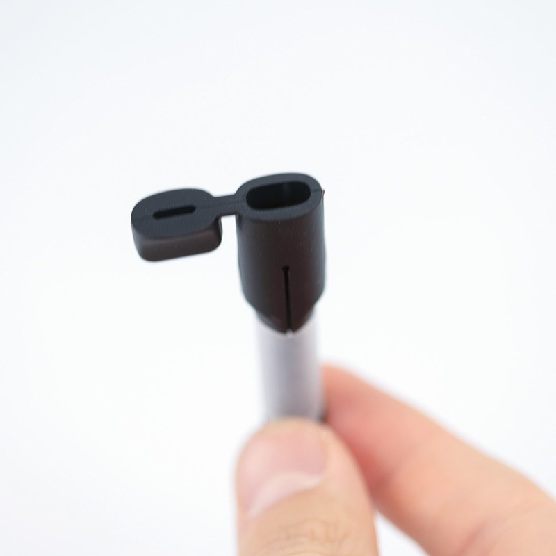 Kabelbeskytteren motvirker de vanligste skadene på ladekabler – sprekker, brudd og dårlig kontakt ved tilkoblingspunktet. Den myke silikonhylsen tres over ledningen og beskytter mot slitasje, mens den ytre plastsylinderen sørger for at beskyttelsen sitter ordentlig på plass.