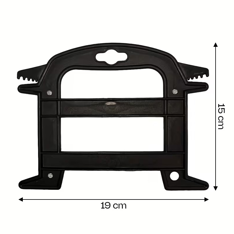 Den robuste plastrammen holder formen, de små tennene i endene låser fast snoren slik at ingenting sklir ut, og hullet i håndtaket gjør at du enkelt kan henge den opp i boden, båten eller garasjen. Passer like godt til husholdningen som til camping, hage og båtliv. En slik liten ting som gjør at alt plutselig føles litt mer på stell.