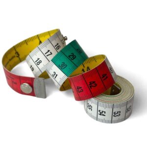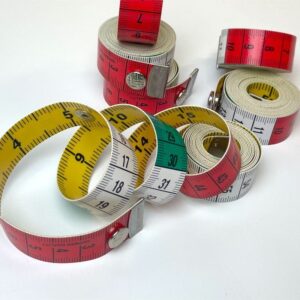 Pålitelig og robust målebånd på 150 cm med trykknapp for praktisk oppbevaring. Båndet har centimeter på den ene siden og tommer på den andre, i tillegg er det fargemarkeringer for enkel avlesning. Målebåndet er 0,5 mm tykt og har en metallstopper i begge ender som sikrer en lang levetid.