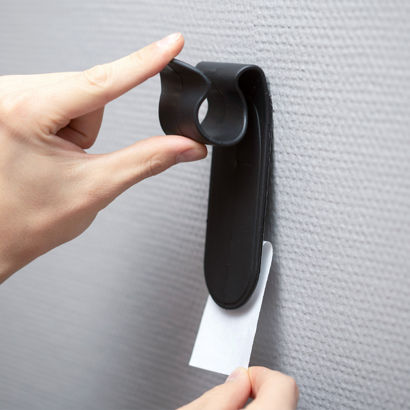 Holderen har et universalgrep som fungerer for de fleste paraplyer. Hvis skaftet er tykt, kan det være nødvendig å trykke til litt ekstra – hvis du da ønsker å montere den stående, kan det være lurt å skru den fast i tillegg.