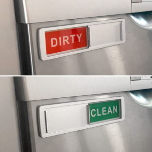 Det er ikke alltid helt lett å vite om oppvasken er ren eller ikke. Dette gjelder spesielt på arbeidsplassen eller i storhusholdningen. Med dette skiltet blir det tydelig. For at skiltet skal være til nytte er det viktig at den som slår på maskinen også oppgir “Clean”. Ved å gjøre det kommer skiltet til sin rett og man unngår forvirring.