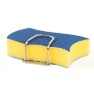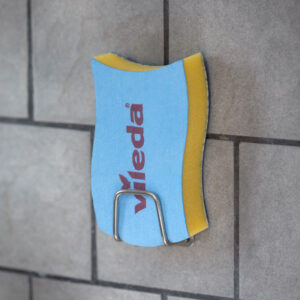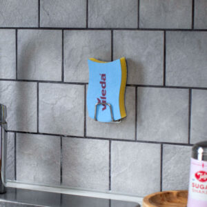 En praktisk og stilren holder som holder svampen på plass og unna veien. Den selvklebende baksiden gjør at du enkelt kan feste holderen på kjøkkenvasken, fliser eller andre glatte overflater – helt uten boring eller skruer.