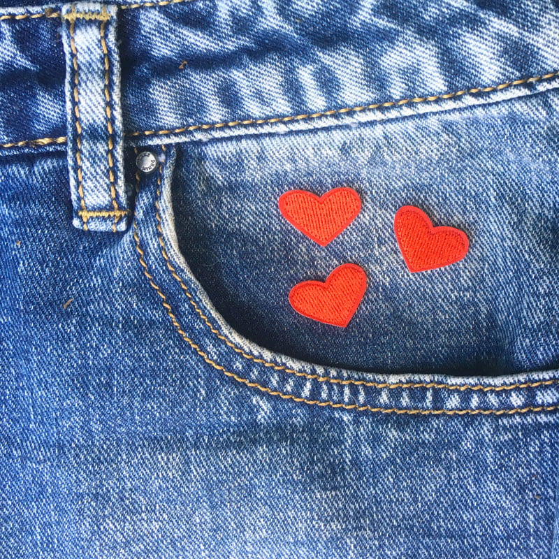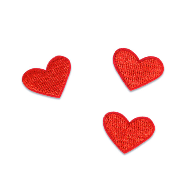 3-pack små broderte hjerter som man kan stryke fast på klær eller andre sorters stoff. Hjertene har en bredde på ca 2 cm, noe som gjør at de passer best som pynt. Baksiden er Iron-on som gjør at man enkelt kan feste de på en kaps, jakke eller tøysko.