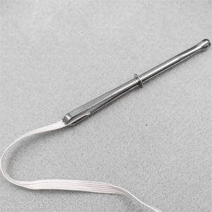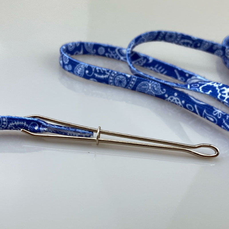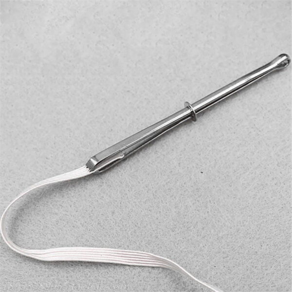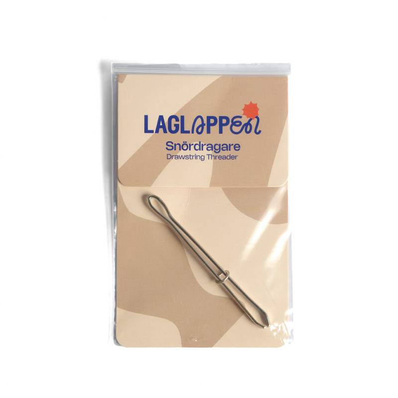 Et meget nyttig verktøy som hjelper til å føre snoren tilbake gjennom hettegenseren, joggebuksene eller jakken. Klem sammen snoren, og trekk ringen oppover slik at gapet på trekknålen låser seg og du kan dra ut snoren.